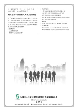 行業務前半年內參加職前訓練。本基金會為辦
