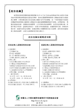 練之機構。本基金會並配合投信投顧公會擴大認可外訓課程,依「中華民國證券投資信