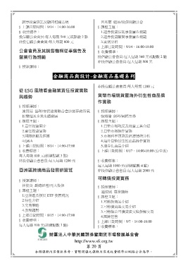 亞洲區跨境商品發展研習班 非投信顧公會會員:每人每期 2000 元