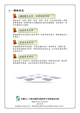 課程涵蓋:金融、證券、期貨、債券、票券、信託等各領域,理論