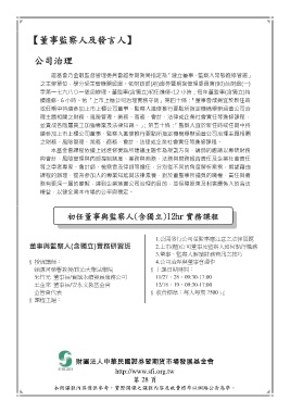 課程的辦理,提升參加人的專業知能與法律素養,對於董監事所擔負的職權、責任與義