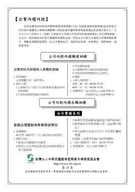 求,規劃多項實務類課程,如:法令實務系列、循環控制作業、財報會計、舞弊查核、風