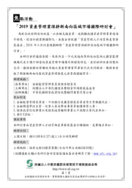 展基金」2019 年工作計畫規劃辦理「資產管理業深耕新南向區域市場國際研