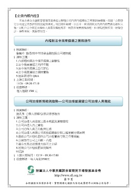 本基金會為金融監督管理委員會指定辦理公司內控內稽課程之專業訓練機構。依據「公開發