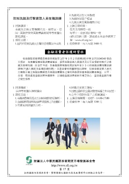 課程(不納入職前及在職訓練時數)。本基金會特規畫辦理此課程,加強金融從業人員充