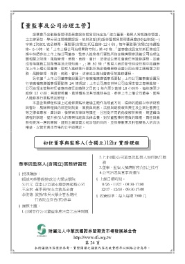 課程的辦理,提升參加人的專業知能與法律素養,對於董監事所擔負的職權、責任與義