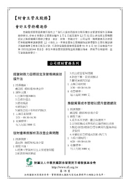 任等相關專業訓練課程 12 小時以上。本基金會係主管機關指定辦理會計主管在職訓練