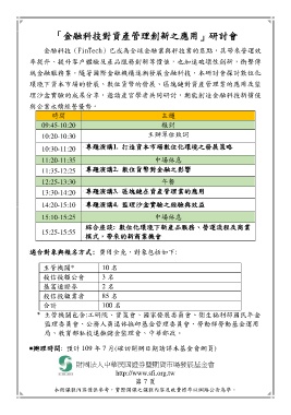 統金融服務業。隨著國際金融機構逐漸發展金融科技,本研討會探討數位化