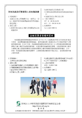 課程(不納入職前及在職訓練時數)。本基金會特規畫辦理此課程,加強金融從業人員充
