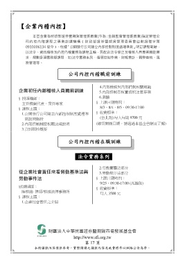 求,規劃多項實務類課程,如:法令實務系列、循環控制作業、財報會計、舞弊查核、風