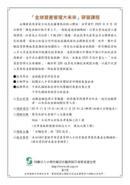 資產管理大未來課程」,擬針對 ESG 投資及另類投資規劃主題,以提升從業