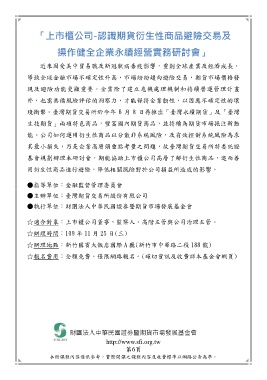 基會規劃辦理本研討會,期能協助上市櫃公司高層了解衍生性商品,進而善